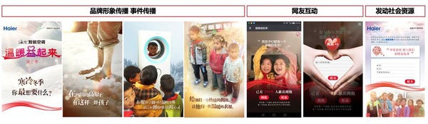 冬季是空调行业的销售淡季,在这一时间段内最适合进行品牌的传播,提升海尔空调品牌的美誉度及认知度。因此海尔空调结合“温暖”主题,以产品带来的温暖感受上升到品牌的社会责任感带来的心灵温暖感受,联合媒体及社会力量发起温暖益起来公益活动,为大凉山山区儿童送去温暖。