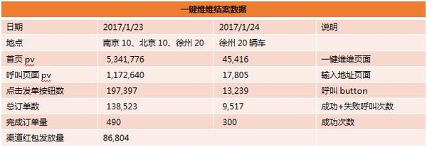 活动高潮:1月23号早晨7点,滴滴出行APP的“一键维维”活动正式上线,北京、南京、徐州三地同时启动(徐州活动持续到25号早7点)。