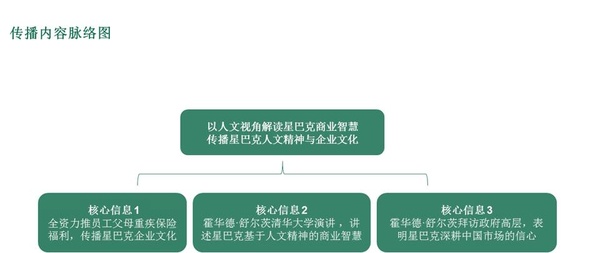 在本次一系列企业新闻事件中,通过定位星巴克品牌形象与消费者情感诉求的最大共鸣点——人文精神、人文关怀和以人为本,提炼传播项目的关键信息,策划传播节奏和渠道。以“全资力推员工父母重疾保险”新闻事件为契机,通过公司高层访华、拜访政府高层及高校演讲等系列新闻事件,有节奏、有策略地从员工关怀、深耕本土市场和品牌商业智慧等几大方面,拓展星巴克品牌与不同消费者的多元接触路径,建立情感共鸣,实现有价值的情感连接。