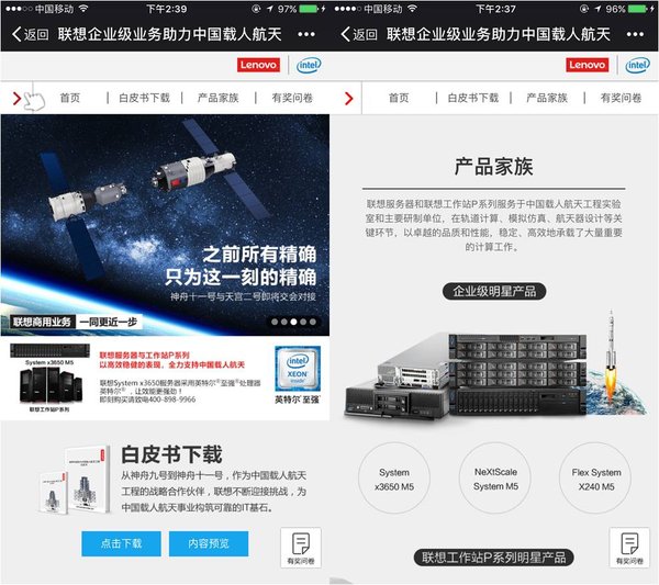 通过渠道伙伴、典型客户、分析师等证言,对联想服务器及联想工作站P系列给予第三方话语支撑,彰显载人航天项目难度和联想服务器及联想工作站P系列在项目中的价值