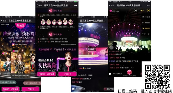 突破以往发布会直播缺乏互动的局限,采用360度VR直播技术,展现唯美发布会,突破“观众只能跟着镜头走”的局限,让观众拥有足够的沉浸体验,想看哪里就看哪里。