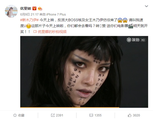 同时扩大木乃伊妆容影响力并吸引更多女性观众,与微博知名美妆时尚博主优里娜合作制作了阿玛内特公主的模仿妆容教程视频。