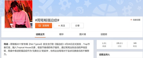 华语超级女歌手周笔畅,在其最新专辑《Not Typical》发布之际,不仅需要宣传其歌曲《强迫症》,还需要提升周笔畅社会形象。