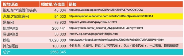 超额完成了播放量目标,并且在汽车垂直领域的网站取得了很好的传播效果。